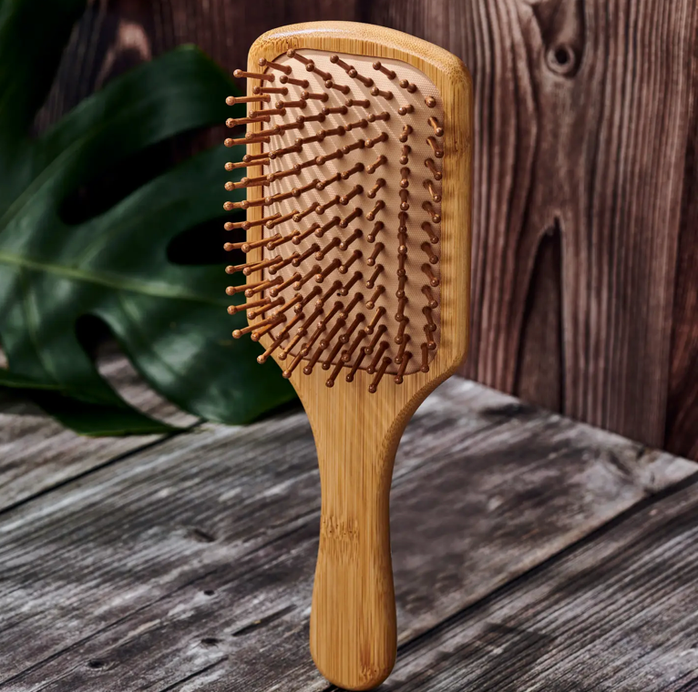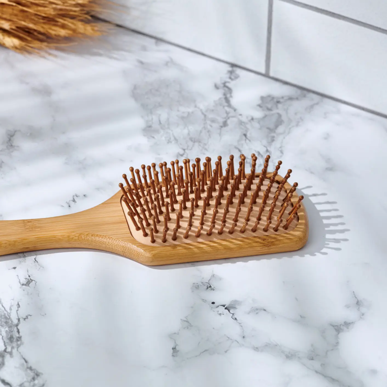 This bamboo paddle hair brush is a great alternative to plastic brushes while being just as effective at detangling your luscious locks.