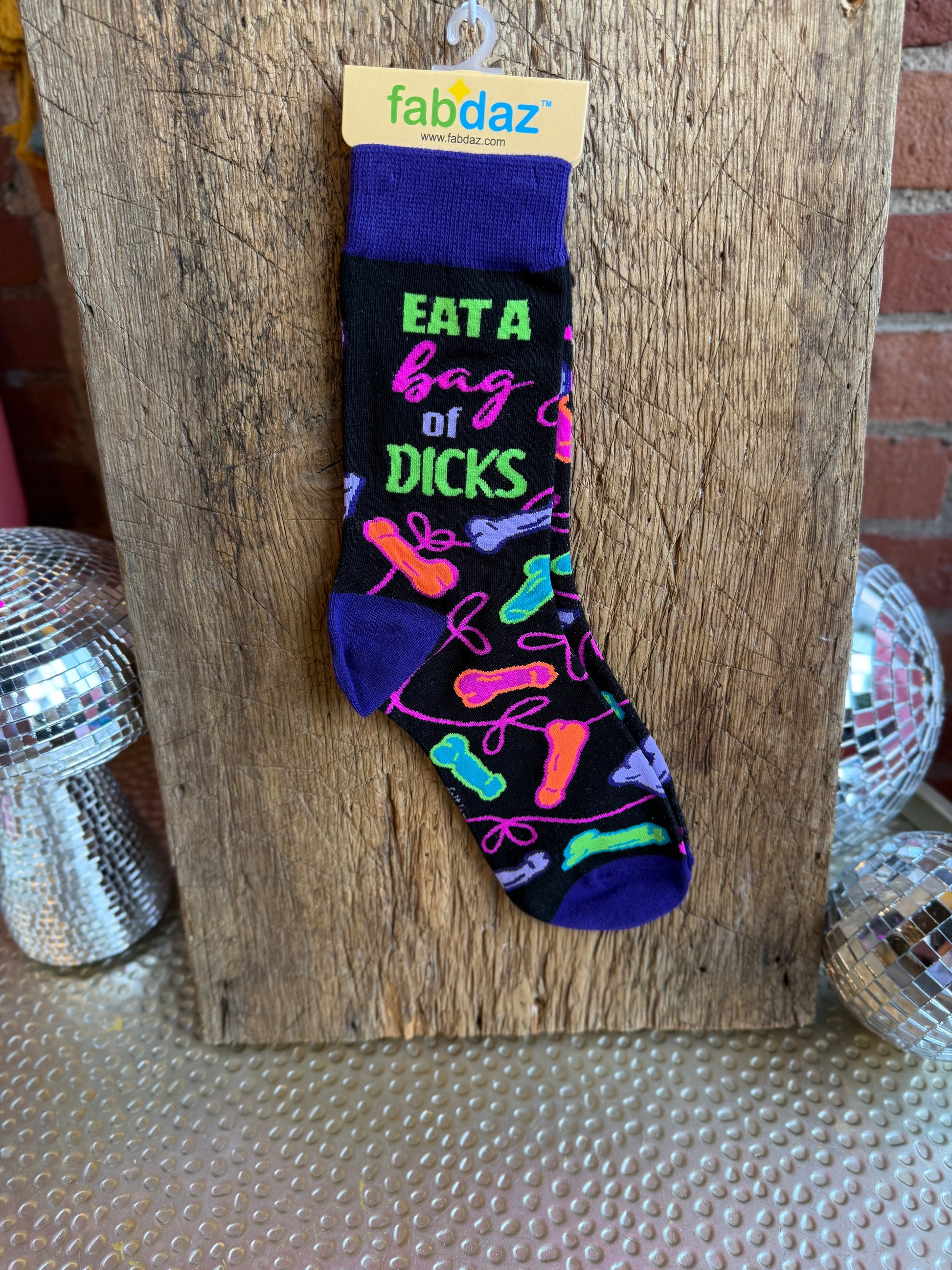 Eat a Bag of Dicks Ladies' Crew Socks Stylish and comfortable! Fits ladies' shoe size 5 to 10.