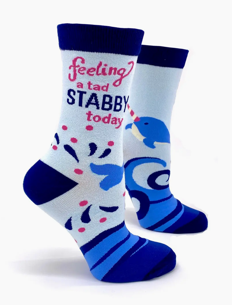 Feeling a Tad Stabby Today Narwhal Women's Crew Socks. Stylish and comfortable! Fits ladies' shoe size 5 to 10.