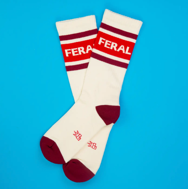 Sometimes all it takes is a single word to let the world know what's up. These FERAL socks pair perfectly with your general disregard for indoor voices and chaotic energy. Wear 'em loud and proud baby!